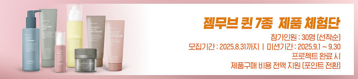 젬무브 퀸 7종 제품 체험단을 모집합니다. 본인의 SNS에 3회 이상 제품 홍보를 진행하시고 사용기를 올려주셔야 합니다. 본 체험프로그램을 통해 제품체험과 온라인 비즈니스를 같이 획득하세요